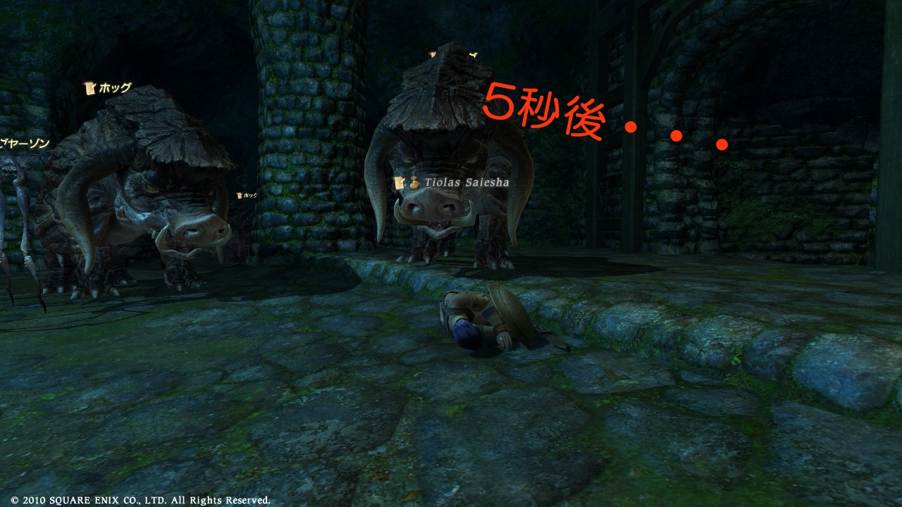 なんかヤバそうな外見のヘッドリップ・オーガです。ティオはこいつにやられて5000点超のダメージを受けました。最大HPの6倍のダメージって、どうしようもないです。